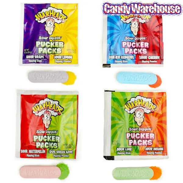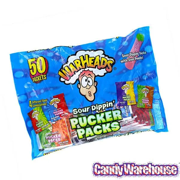 We've finally found the weapons of mass destruction... release sour power of nuclear warhead proportions inside your mouth with these intense powder candy packs!Bag contains 50 packs of WarHeads Sour Dippin' Pucker Candy.Shipping Weight ~ 1.5 lbs.