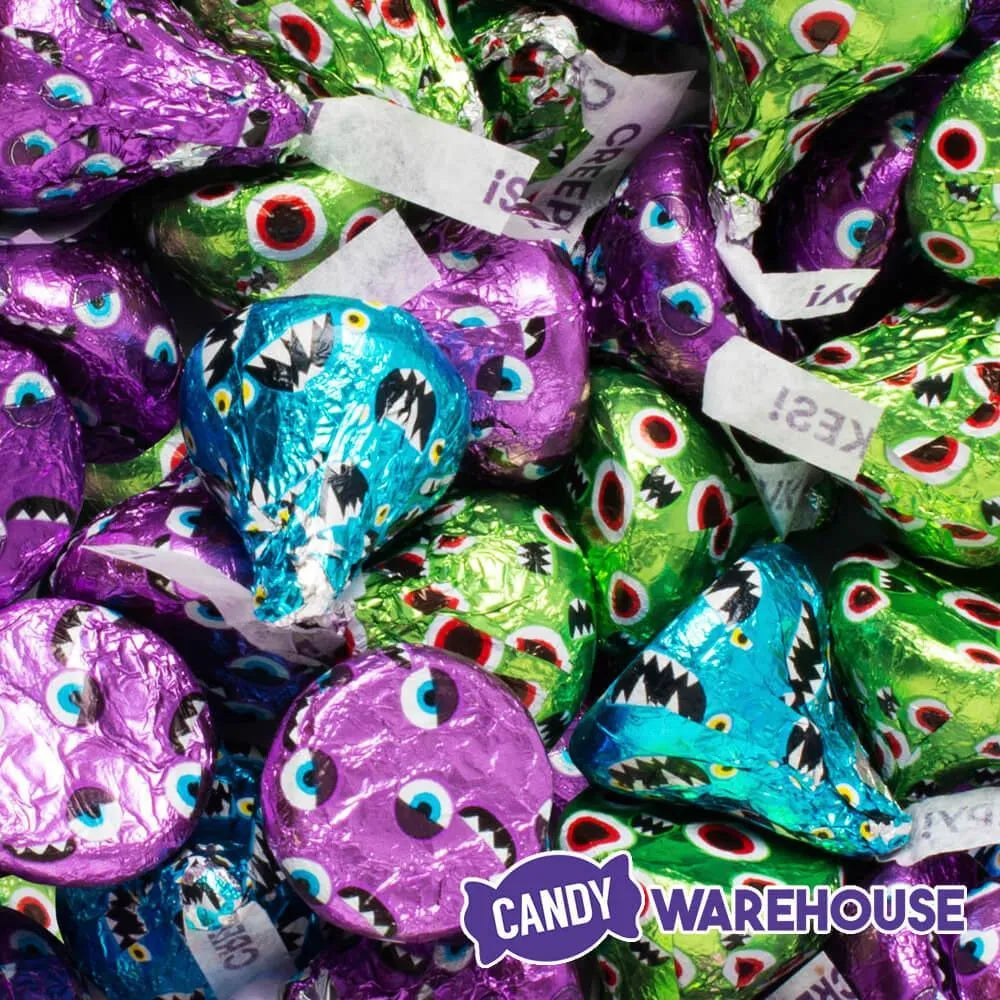 Elevate your Halloween candy dish with Halloween Hershey KISSES in spooky wrappers sure to elicit shrieks of joy with every bite. Each white paper plume flowing out of the top of these Halloween KISSES is printed with fun expressions such as BOO!, SCARY, or CREEPY! The colorful foils feature three Halloween designs.