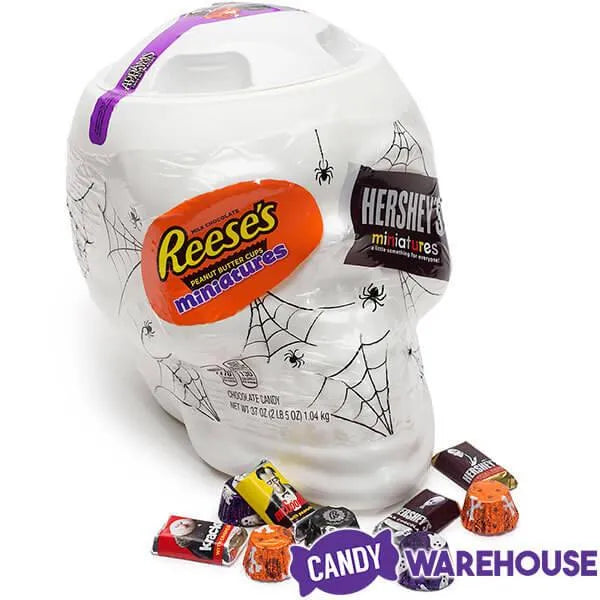 Don't lose your head when Halloween rolls around by snapping up this Hersheys skull bowl assortment candy. The mind-blowing party in a skull offers all of your favorite Hershey’s miniatures mixed with delectable Reese’s Peanut Butter Cup miniatures in a spooky serving bowl. Dive into the 160-pieces Halloween assortment to find mini Hershey’s Milk Chocolate and Special Dark Chocolate bars, crispy-crunchy Krackel bars, and nutty, milk-chocolatey Mr. Goodbar. Each tantalizing treat in the Hershey's skull bowl candy assortment is individually wrapped for easy sharing with trick-or-treaters or party guests. Take a load off your cranium by doing all of your Halloween shopping at Candy Warehouse.