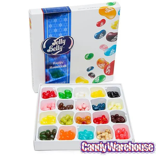 Hanukkah gift box contains 8.5 ounces of Jelly Belly 20 Flavors Jelly Beans Candy.