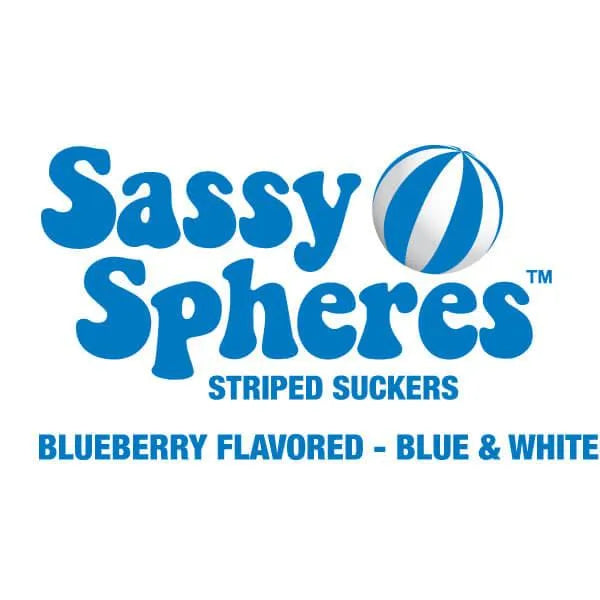 Bag contains 100 individually wrapped Blue Sassy Suckers Striped Ball Lollipops.