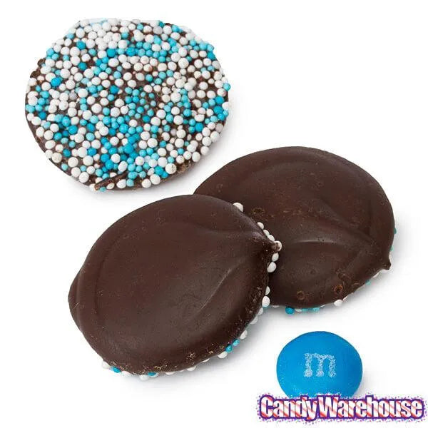 The French-inspired word nonpareil is an adjective meaning "better than any other" or "having no equal." And we don’t know about you, but when it comes to candy, we really like ours to be the best there is! That’s why we recommend these white and blue dark chocolate nonpareils for all your celebrations. Topped with pastel sugar sprinkles, each round piece of dark chocolate is rich and decadent. The smoothness of the chocolate combines with the sweet crunch of the sprinkles to make for an extraordinary confectionery experience in every bite!