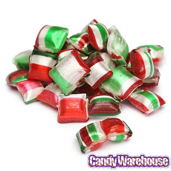 Bag contains 3 pounds of Christmas Snow Kisses Hard Candy.
