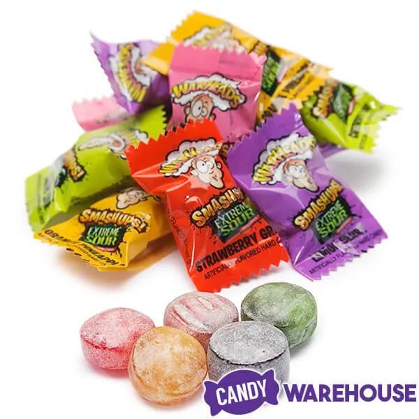 Box contains 12 WarHeads Smashups Extreme Sour Hard Candy Packs, each with a net weight of 3.25 ounces.