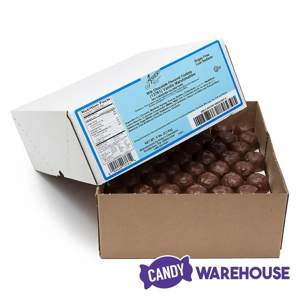 Box contains 5 pounds of Sugar Free Vanilla Marshmallow Milk Chocolates.
