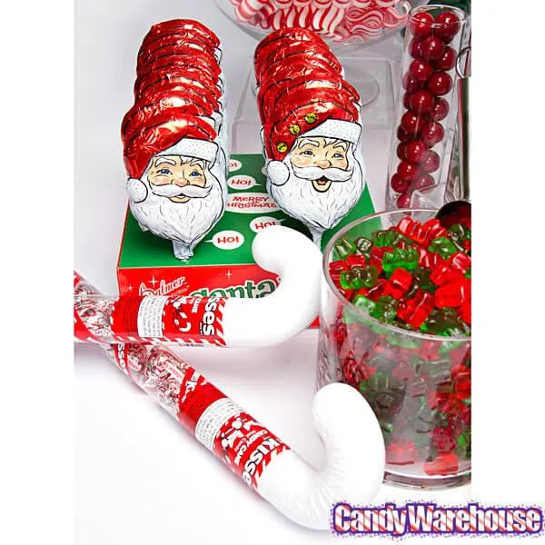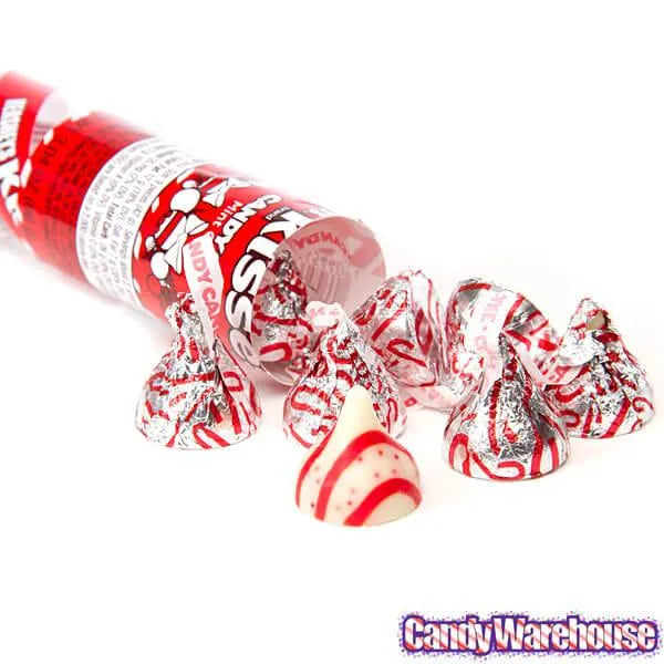 Plastic candy cane tube contains 2.08 ounces of Hershey's Kisses Candy Cane Chocolates.