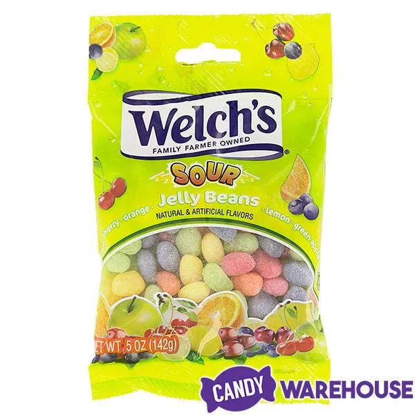 Box contains 3 pounds of Welch's Assorted Sour Jelly Beans Candy packed in 10 bags, each with a net weight of 5 ounces.