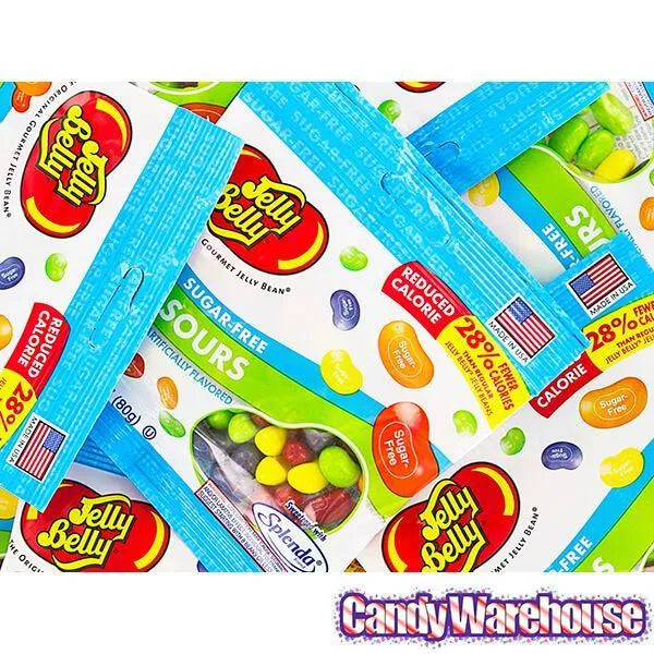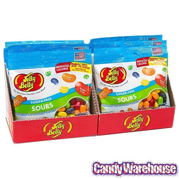 Display box includes 12 Jelly Belly Sugar Free Sour Jelly Beans Candy Bags, each with a net weight of 2.8 ounces.