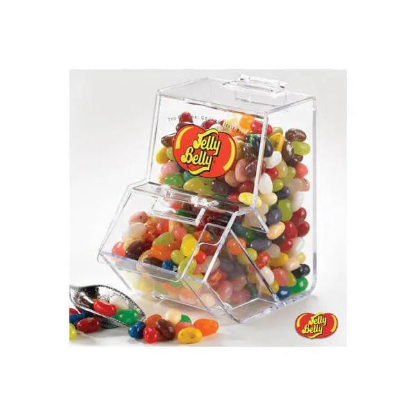 What a great way for you to scoop up Jelly Belly! This clear plastic storage bin is the perfect showcase for Jelly Belly's fun colors and flavors. It comes with a 3.5 ounce bag of gourmet jelly beans in assorted flavors and a handy mini scoop. It makes a great gift or desk dispenser. Refill with beans as often as needed!