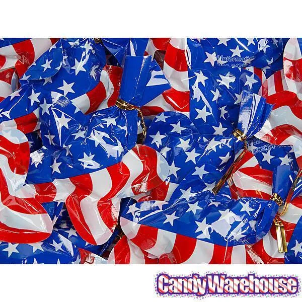 Bag contains 24 USA Flag Colored Star Shaped Cellophane Pouches with Jelly Beans Candy.
