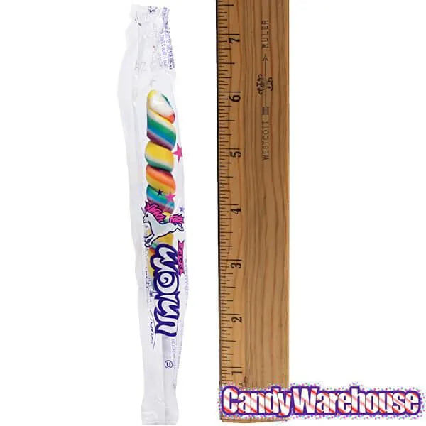 Jar includes 24 wrapped Mini Rainbow Twist Unicorn Pops. Each pop weighs .42 ounces