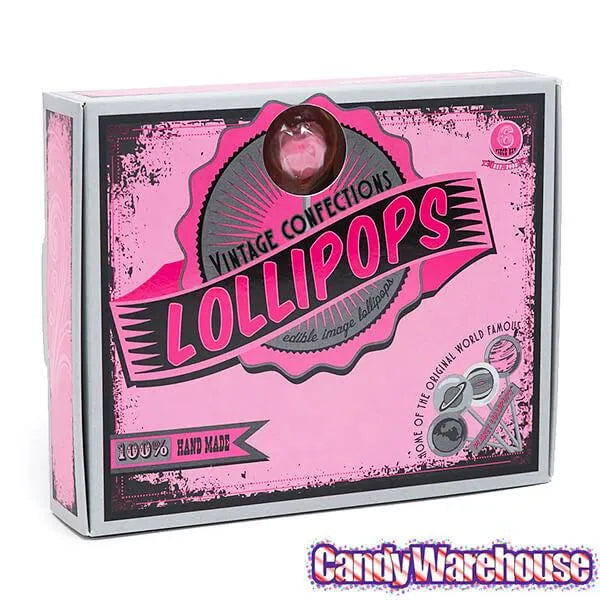 Gift box contains 6 Conversation Candy Hearts Lollipops.