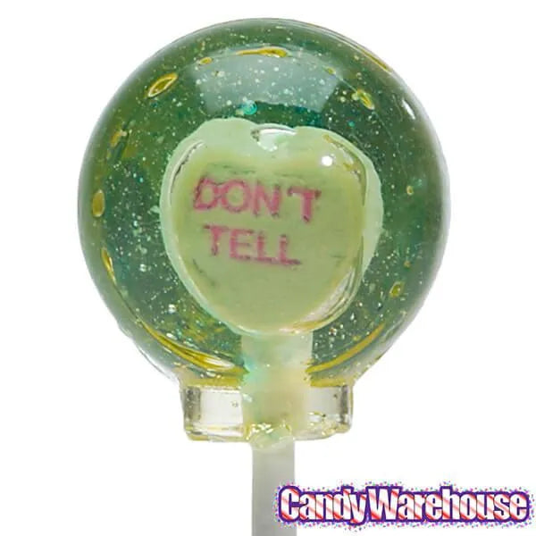 The oft heard refrain "It's what's inside that counts" has added meaning in regards to these clear hard candy ball pops that encase classic Valentine hearts at their core... an obvious tease that is sure to please. As with all long lasting love, it takes work and dedication to achieve the ultimate prize... the true heart of the one you love. Packaged in a retro-styled gift box, these adorable Valentine's Day suckers make a unique gift for that special someone and shows you care enough to find something nicer than available on a last minute trip to the local convenience store.