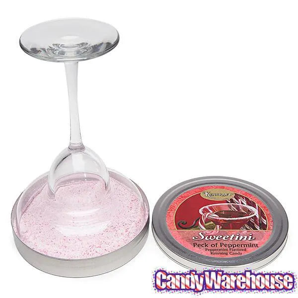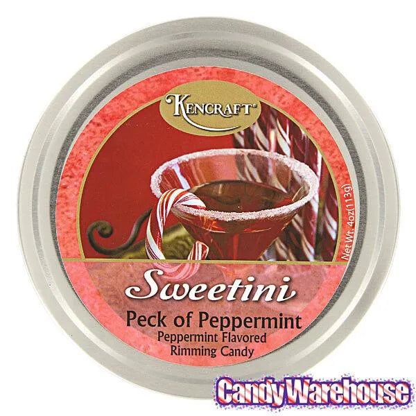 Tin contains 4 ounces of Peppermint Sweetini Cocktail Rim Sugar.