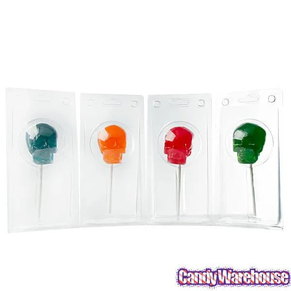 Box contains 4 Assorted Gummi Skulls on a Stick.