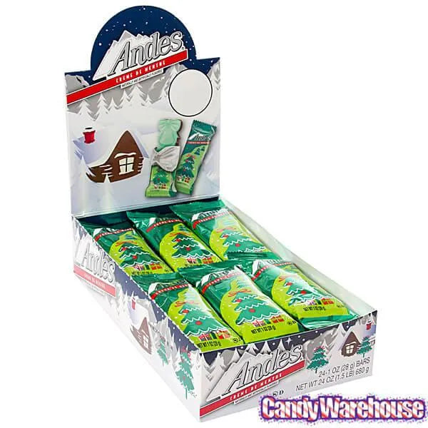 Display box contains 24 Andes Crème de Menthe Chocolate Christmas Trees.