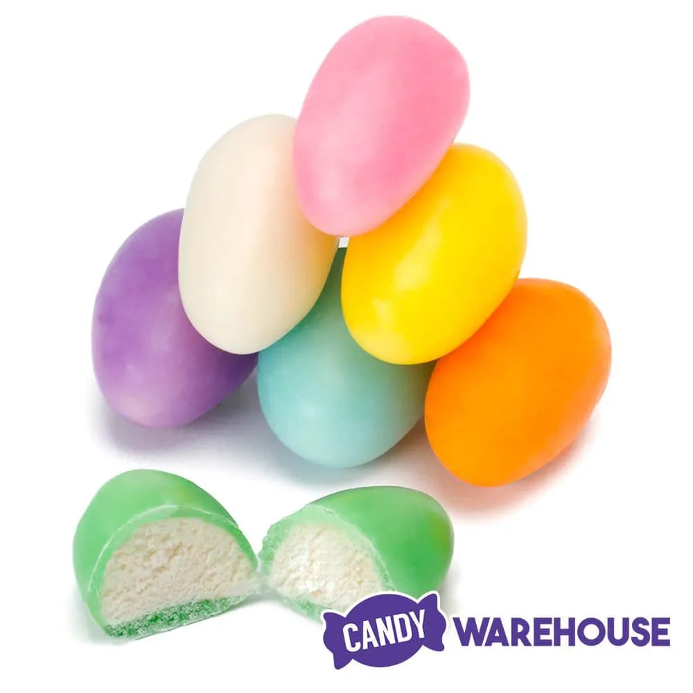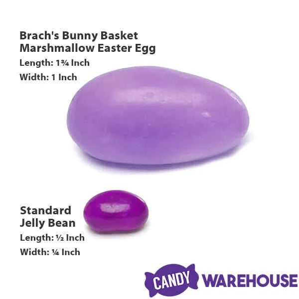 Old fashioned Easter candy eggs featuring a fluffy marshmallow center surrounded by a sweet candy shell! Many years ago they were called Brach's Hide and Seek Eggs, but these Easter candy marshmallow eggs have the same old fashioned formula. Although the color assortment may include White, Yellow, Orange, Green, Light Blue, Purple, and Pink, not every color of Brach's marshmallow Easter eggs is guaranteed to be in every bag. Each candy egg is wrapped with clear cellophane, making them perfect for Easter baskets and Easter Egg Hunts.