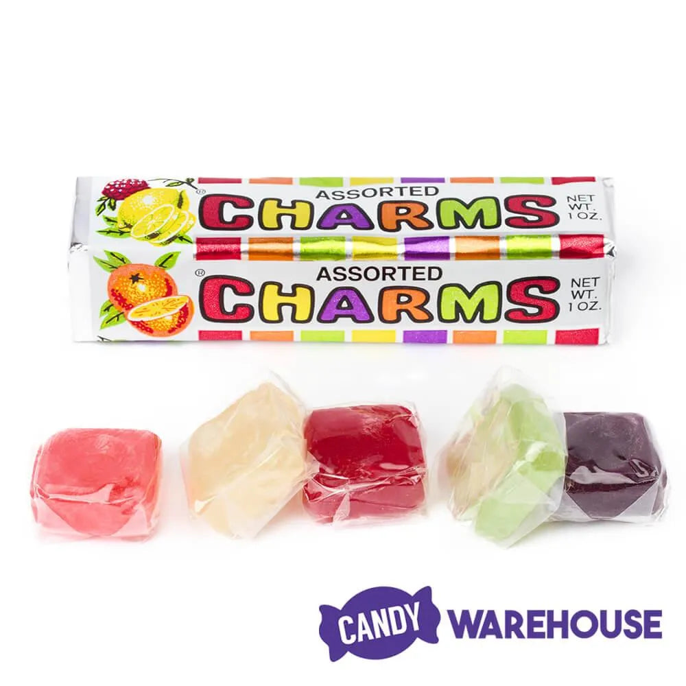 Hard, square candies in an assortment of those yummy Charms fruit flavors:CherryGrapeLemonLimeOrangeRaspberry
