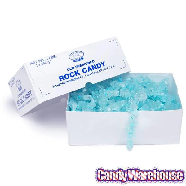 Box contains 5 pounds of Light Blue Rock Candy Strings.