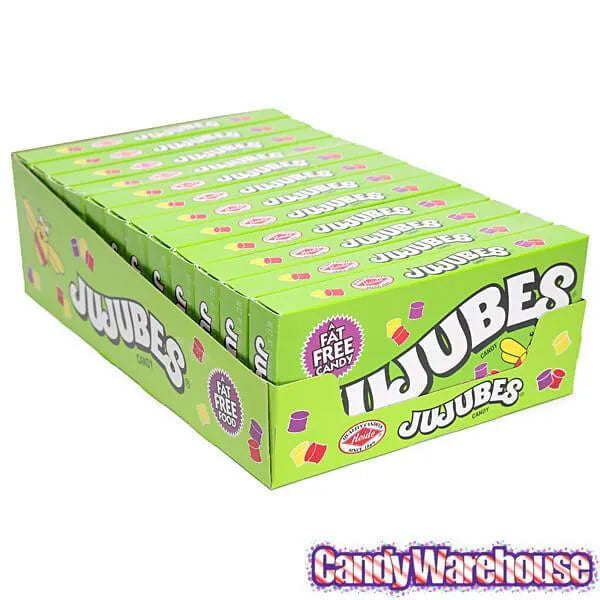 Box contains 12 Jujubes Candy Theater Size Packs, each with a net weight of 5.5 ounces.