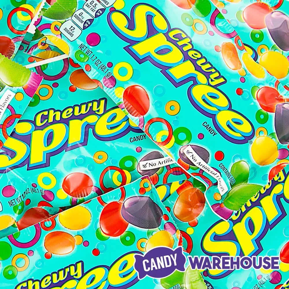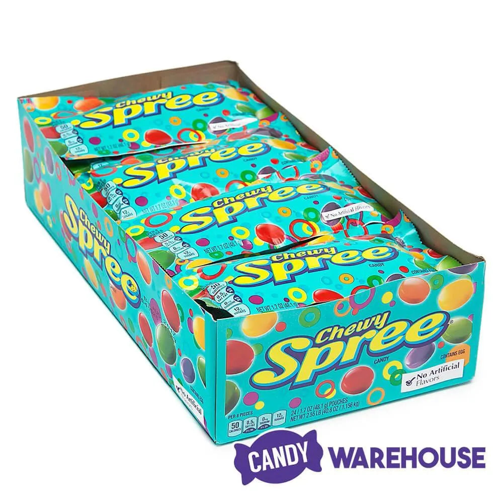 Display box contains 24 Chewy Spree Candy Packs, each with a net weight of 1.7 ounces.