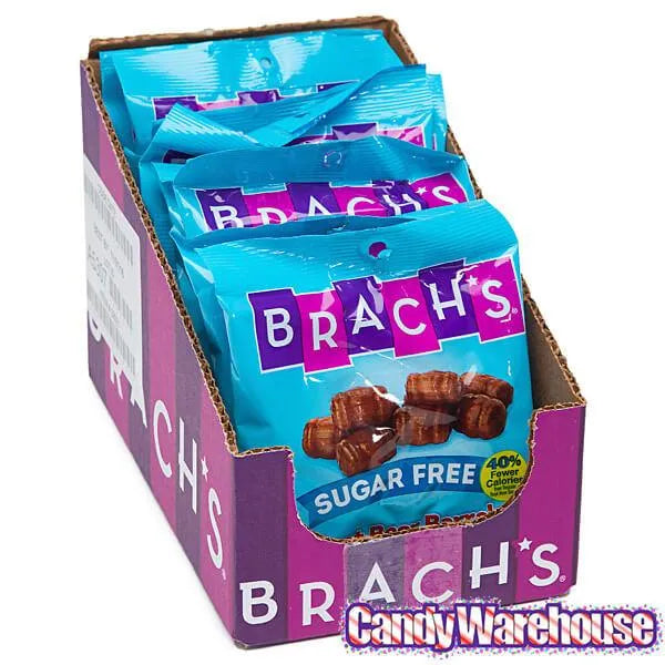 Box contains 2.6 pounds of Brach's Sugar Free Root Beer Barrels Hard Candy packed in 12 bags, each with a net weight of 3.5 ounces.