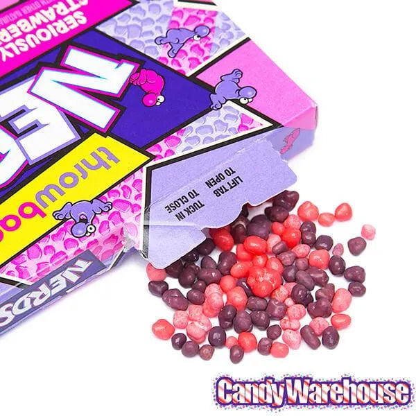 Box contains 12 Strawberry & Grape Nerds Candy Movie Theater Packs, each with a net weight of 5 ounces.