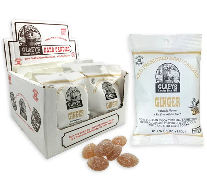 Claeys Hard Candy Drops Peg Bags - Ginger: 12-Piece Box