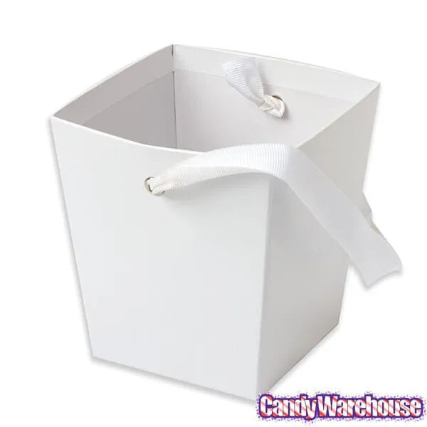 Set includes 6 White Cardboard Buckets with Ribbon Handles.