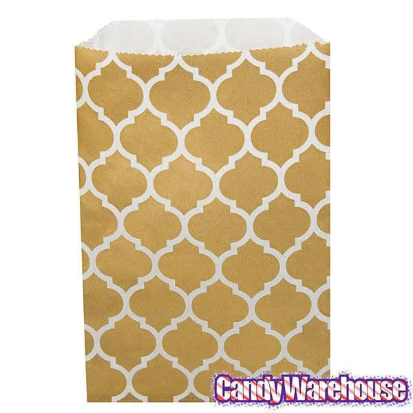Pack contains 25 Metallic Gold Casablanca Pattern Candy Bags.