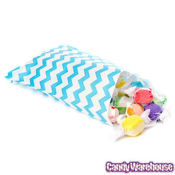 Pack contains 25 Aqua Blue Chevron Stripe Candy Bags.