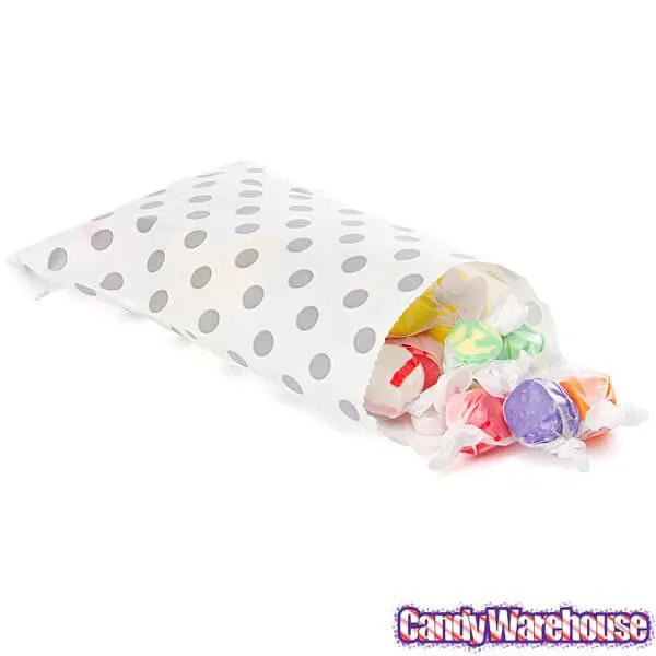 Pack contains 25 Grey Polka Dot Candy Bags.