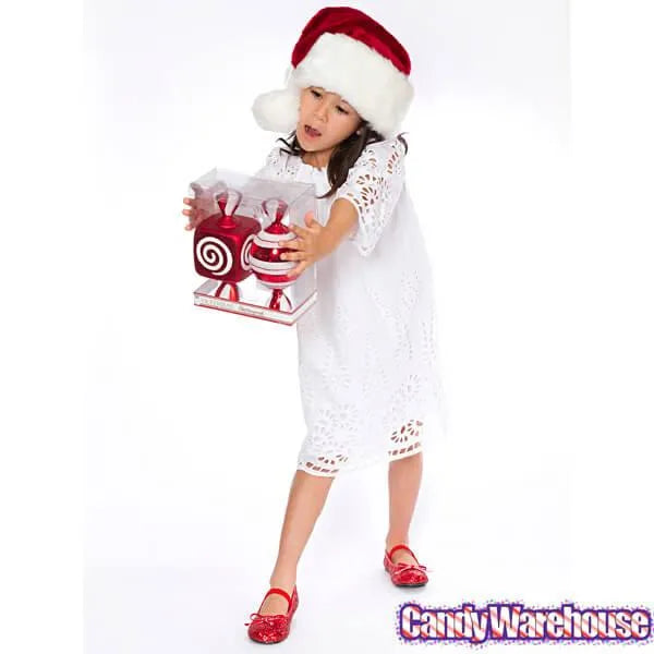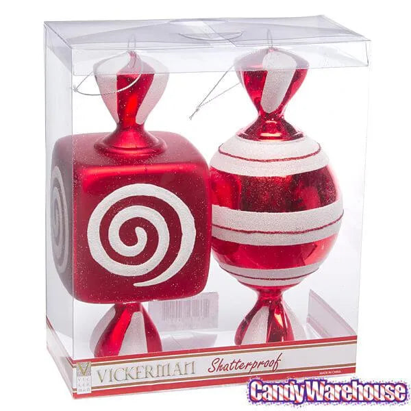 Box contains 2 Large Red Candy Ornaments.