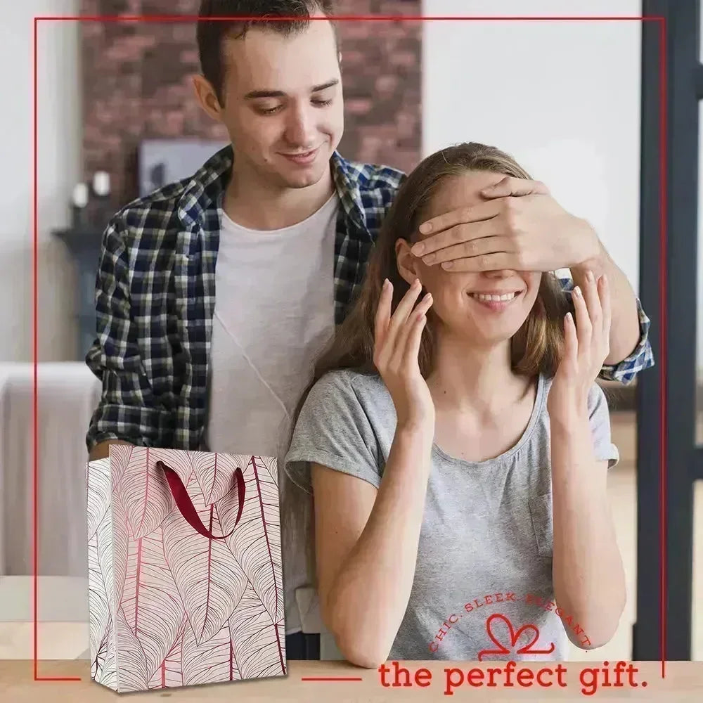 Make a statement with our Leaf Design Maroon Gift Bags. Whether you're presenting a single special gift or an assortment of treasures, these bags exude elegance and sophistication. Order your 12-pack today and elevate your gift-giving experience with a touch of refined style.