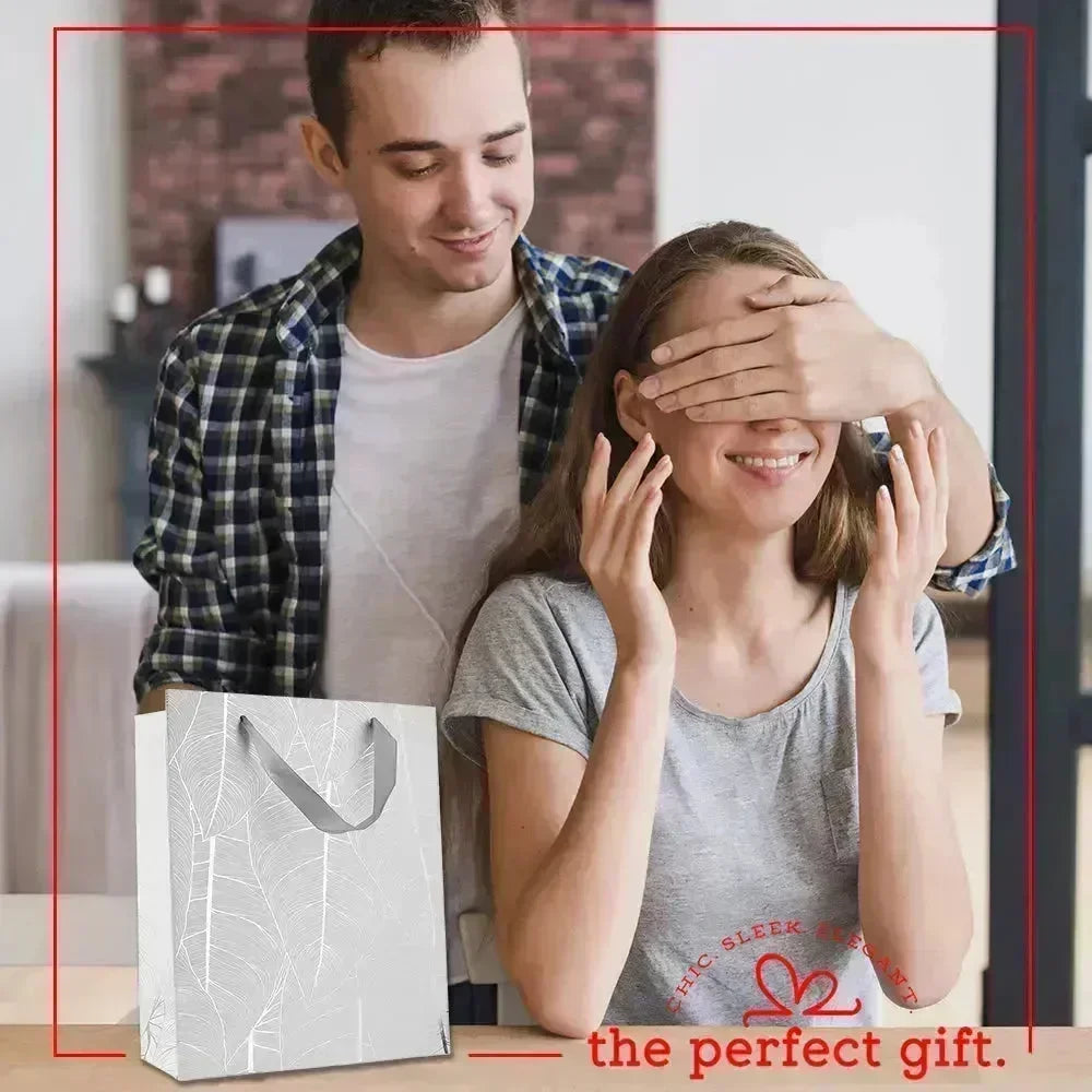 - ATTRACTIVE DESIGN: Gift ribbon bags that will make your gifts look even more classy and unique! Our pretty holiday gift bags for men and women are designed to attract everyone’s attention with their eye-catching designs and adorable ribbon handles