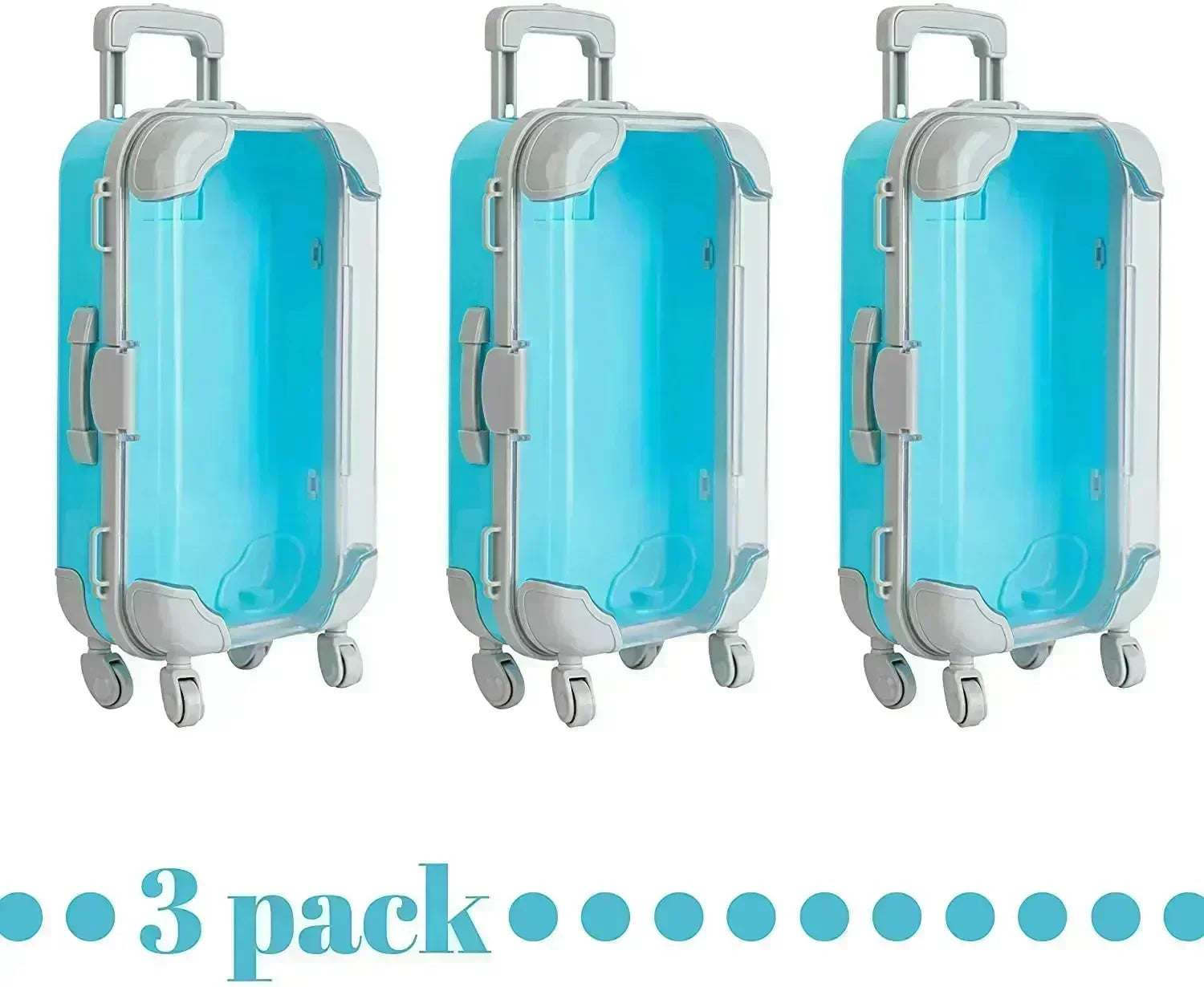 Introducing our Plastic Suitcase Candy Box in a pack of 3, measuring 7.5" x 5" x 2.5" and available in a vibrant blue color. These adorable suitcase-shaped boxes have multiple uses and are perfect for various purposes.