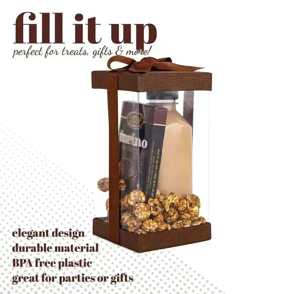 Enhance the appeal of your bakery creations with our Clear Plastic Gift Boxes: 6 Pack Bakery Boxes. With their spacious dimensions, base lid, and charming brown ribbon, these boxes are perfect for showcasing your culinary skills and making a lasting impression. Elevate your bakery presentation to new heights of sophistication and delight your recipients with a truly unforgettable experience.