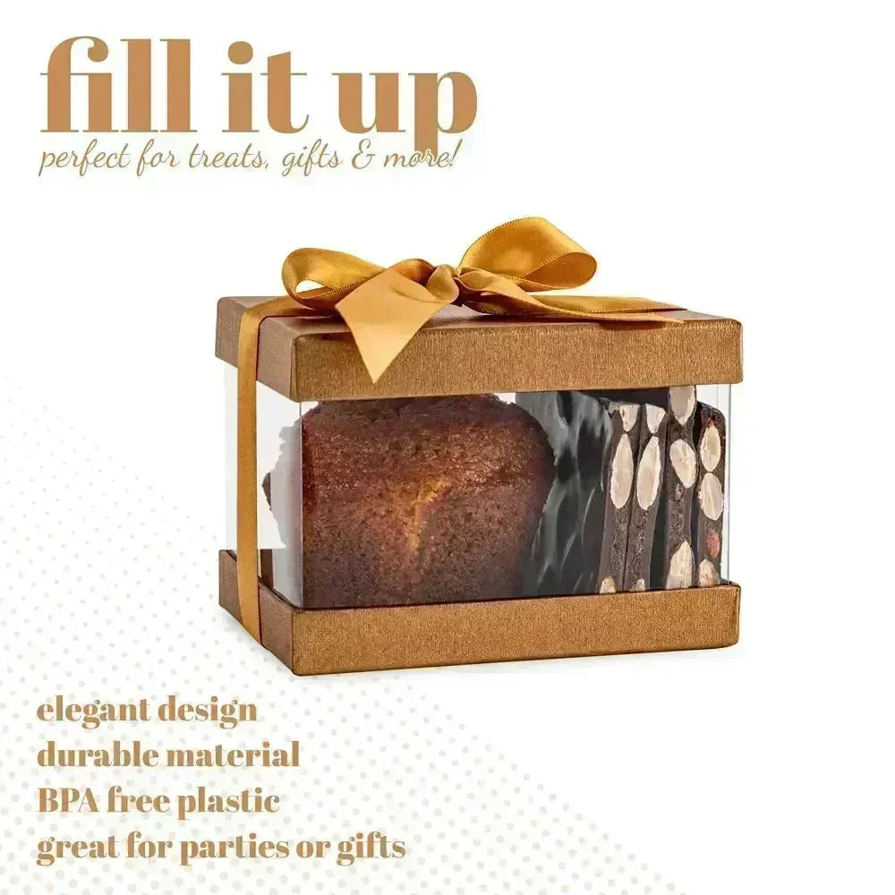 Not only do these Clear Plastic Gift Boxes enhance the visual appeal of your bakery treats, but they also offer practicality and durability. The sturdy construction ensures that your treats remain safe and protected during transportation, allowing you to share your culinary creations with confidence. The easy-to-use base lid provides convenient access, keeping your treats fresh and delightful until they are savored.