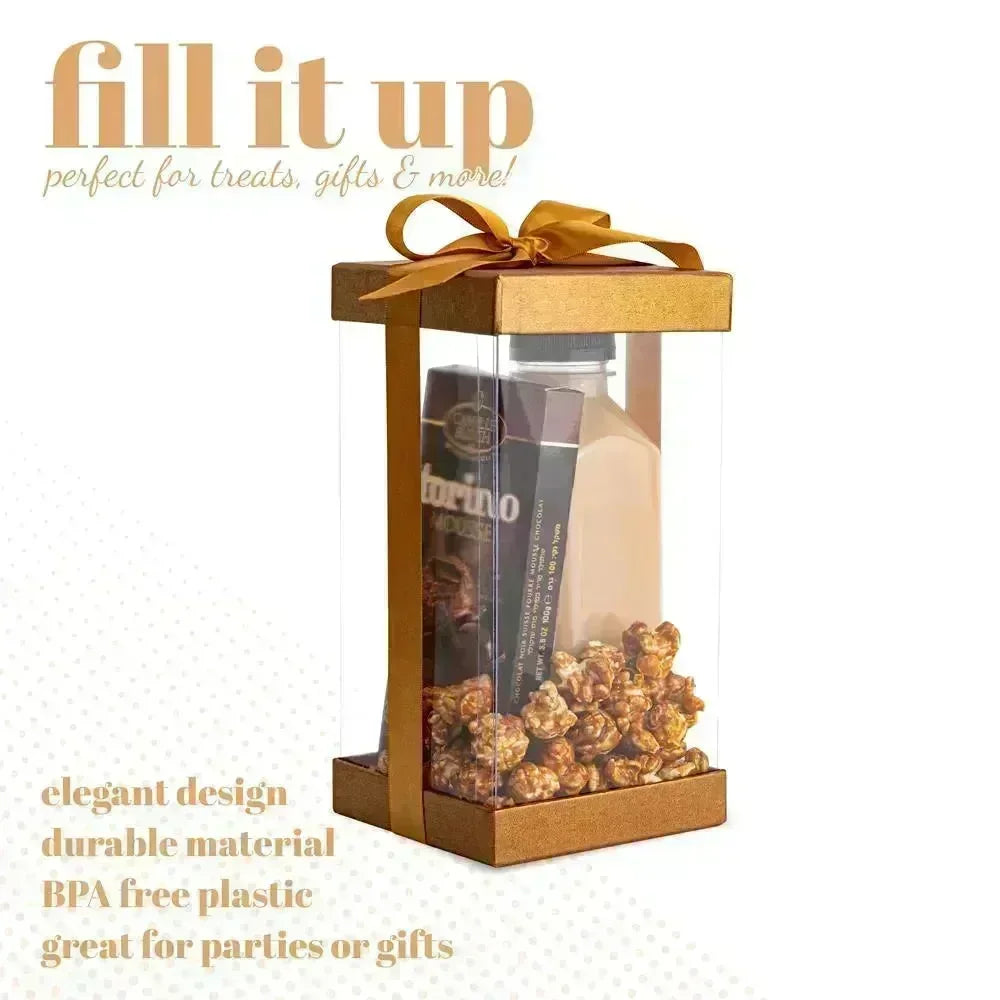 Plastic Gift Boxes Gold 8X4X4" 6 Pack Bakery Boxes With Base Lid & Ribbon
