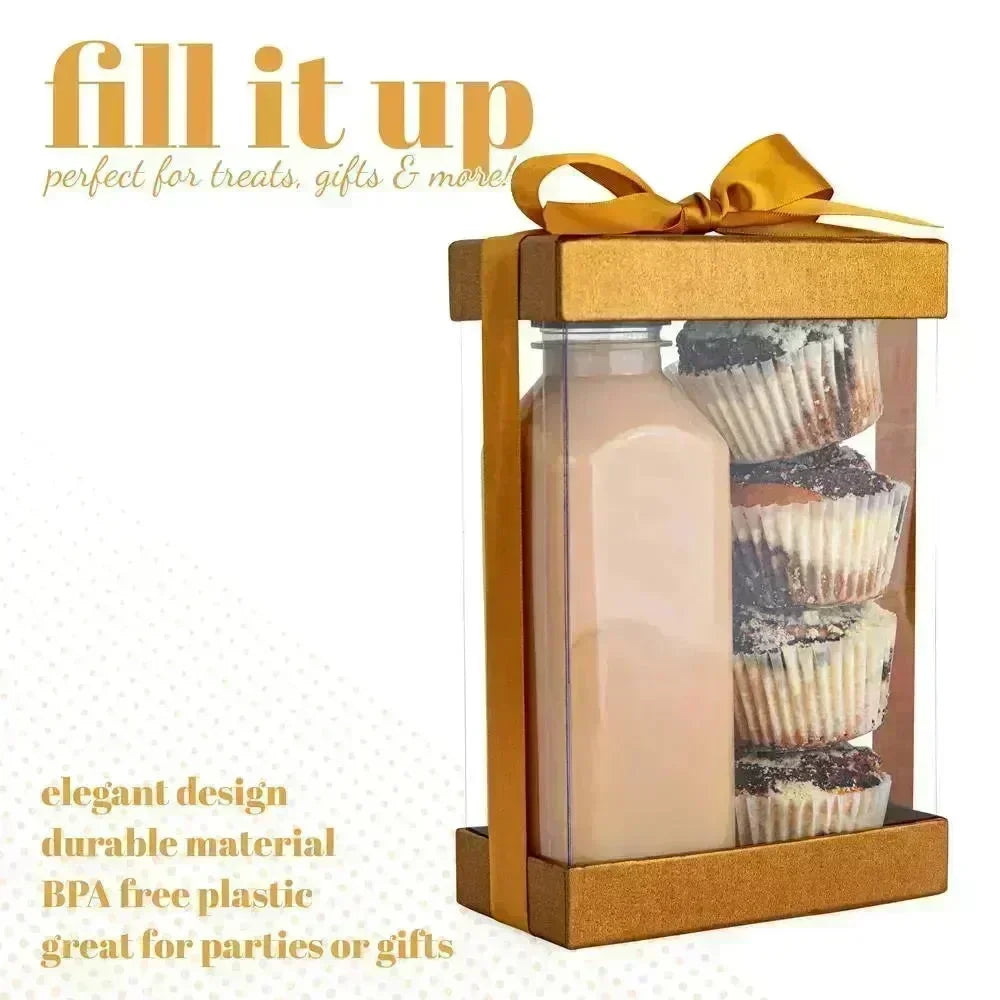 Elevate your bakery presentation with our Clear Plastic Gift Boxes: 6 Pack Bakery Boxes. With their ideal dimensions, base lid, and luxurious gold ribbon, these boxes provide a sophisticated and stylish platform for showcasing your delightful treats. Make a lasting impression and create an unforgettable gifting experience with these elegant and glamorous gift boxes.