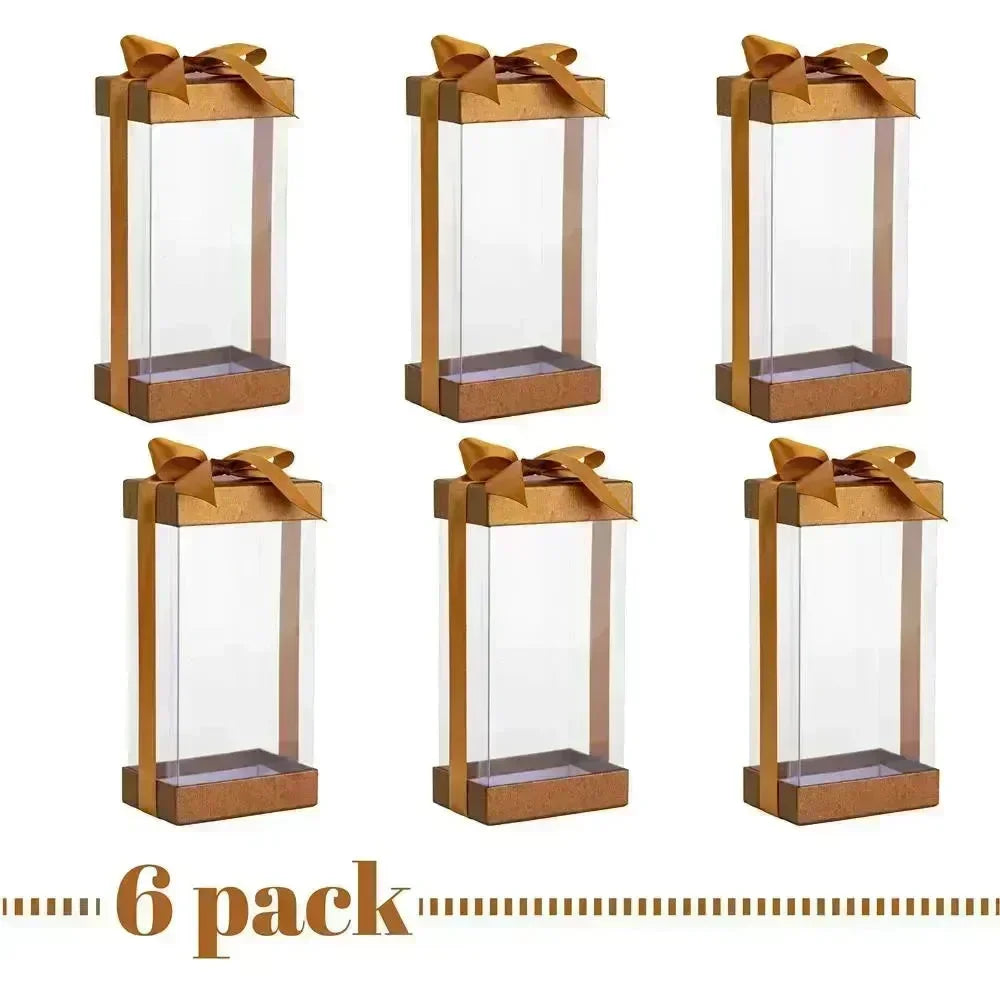 Elevate your bakery presentation with our Clear Plastic Gift Boxes: 6 Pack Bakery Boxes. With their ideal dimensions, base lid, and elegant gold ribbon, these boxes provide a sophisticated and stylish platform for showcasing your delightful treats. Leave a lasting impression and create an unforgettable gifting experience with these stunning and luxurious gift boxes.