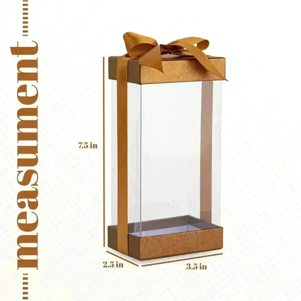 Introducing our exquisite Clear Plastic Gift Boxes: 6 Pack Bakery Boxes, designed to add a touch of elegance to your bakery creations. Each box comes complete with a convenient base lid and a stunning gold ribbon, elevating your presentation to a whole new level. With dimensions of 7.5X3.75X2.5", these boxes are perfectly sized to showcase your delectable treats.