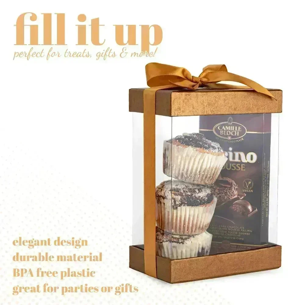 Experience a unique and visually appealing way to present your gifts with our Clear Plastic Gift Boxes: 6 Pack Bakery Boxes. These transparent gift boxes provide an attractive means of showcasing the contents within, eliminating the need for traditional gift wrapping. Say goodbye to the standard gift wrapping paper and embrace the modern elegance of these clear gift boxes.