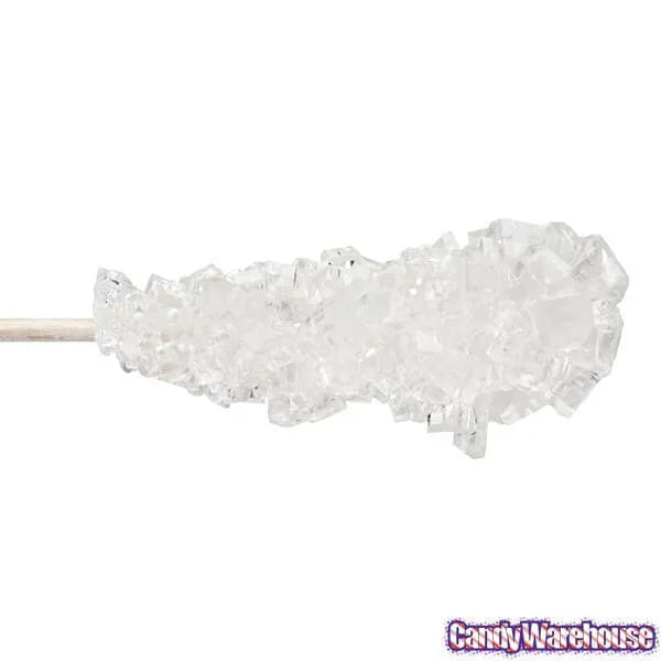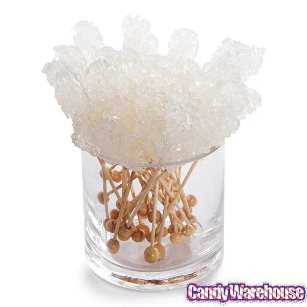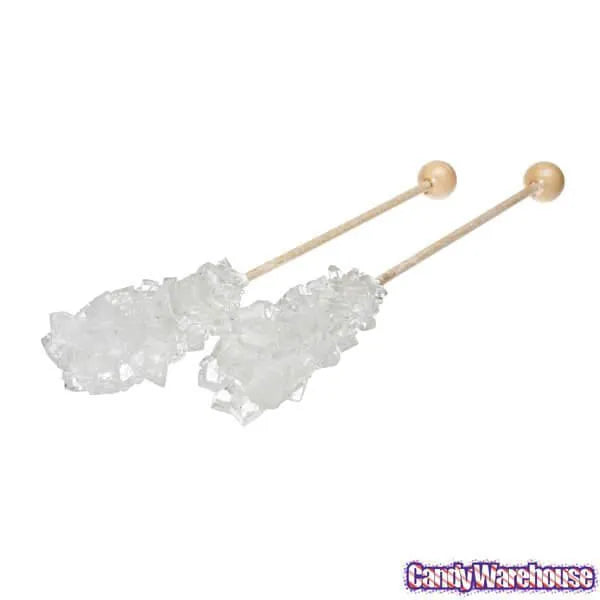 Case contains 100 White Rock Candy Swizzle Sticks. Made with Cane Sugar
