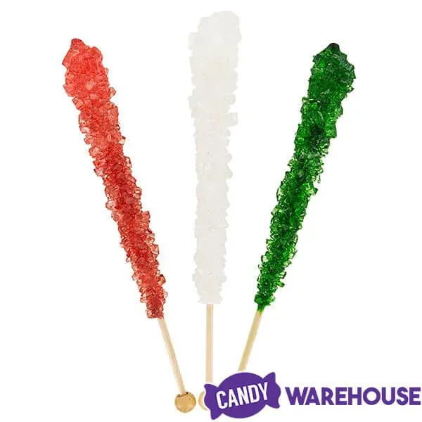 Tub contains 36 wrapped Christmas Assortment Rock Candy Sticks.