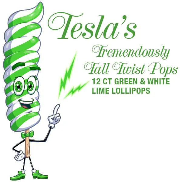 Box contains 12 wrapped Green & White Tremendously Tall Twist Pops.