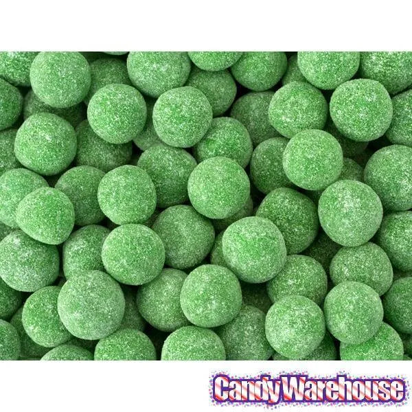 Bag contains 5 pounds of Green Apple Spanks Chewy Sour Candy Balls.