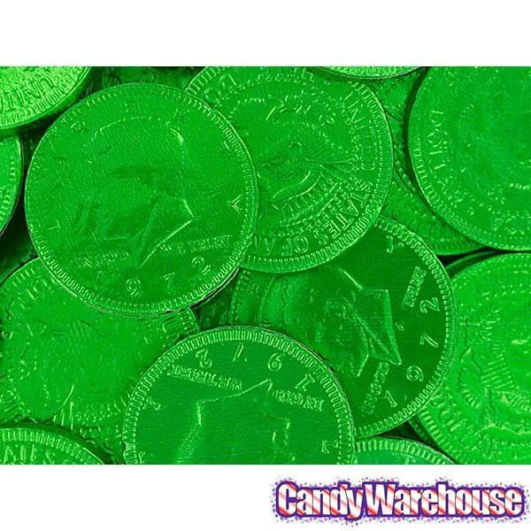 Mesh bag contains 1 pound of Fort Knox Green Foiled Milk Chocolate Coins... that's about 88 coins.