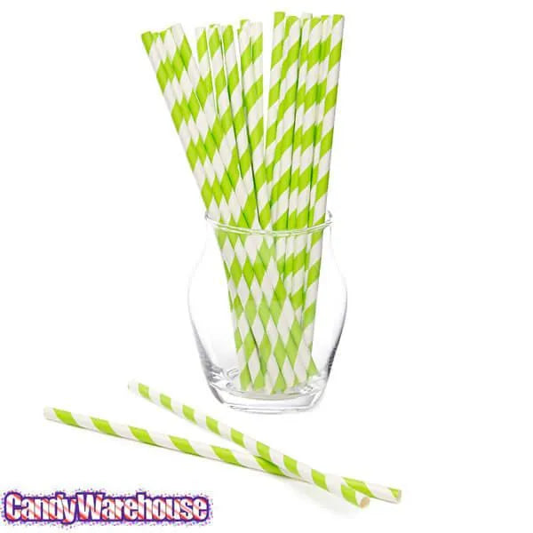 Paper 7.75-Inch Drinking Straws - Jasmine Green Stripes: 25-Piece Pack