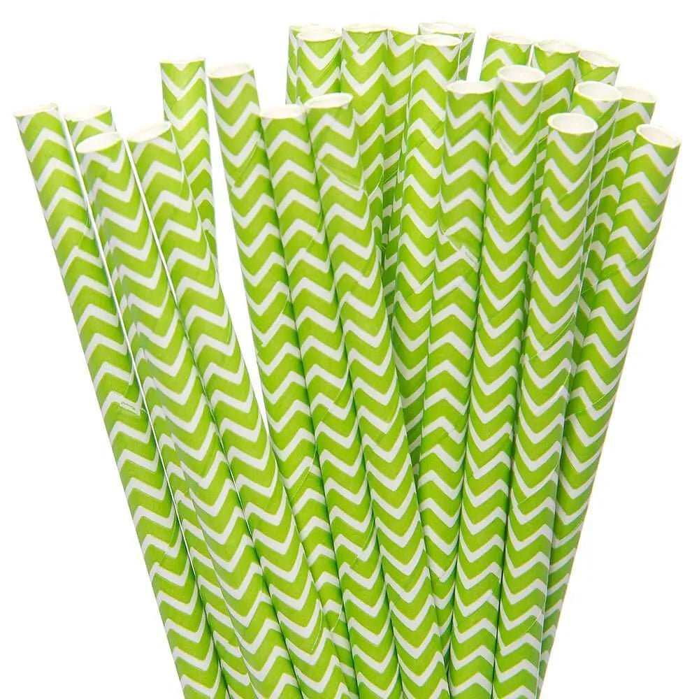 Paper 7.75-Inch Drinking Straws - Jasmine Green Chevron Stripes: 25-Piece Pack